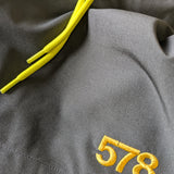 Decorated with our 578 embroidery, complete with net lining. Finished with a canary yellow drawstring and rear tab detail. Rear pocket with a velcro fastener to keep those valuables secure.
