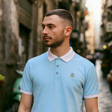 Cut from premium pique cotton, this soft blue polo brings a bold update to a timeless silhouette. The white collar and cuffs adds a clean contrast — subtle enough to be smart, sharp enough to stand out.