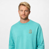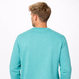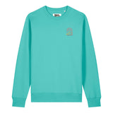 The Pool Sweatshirt in Aqua — a clean-cut heavyweight organic cotton crewneck with subtle fluro embroidery and lasting structure. Built for everyday wear, designed to stand apart.